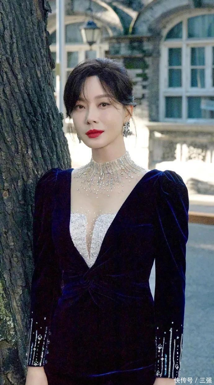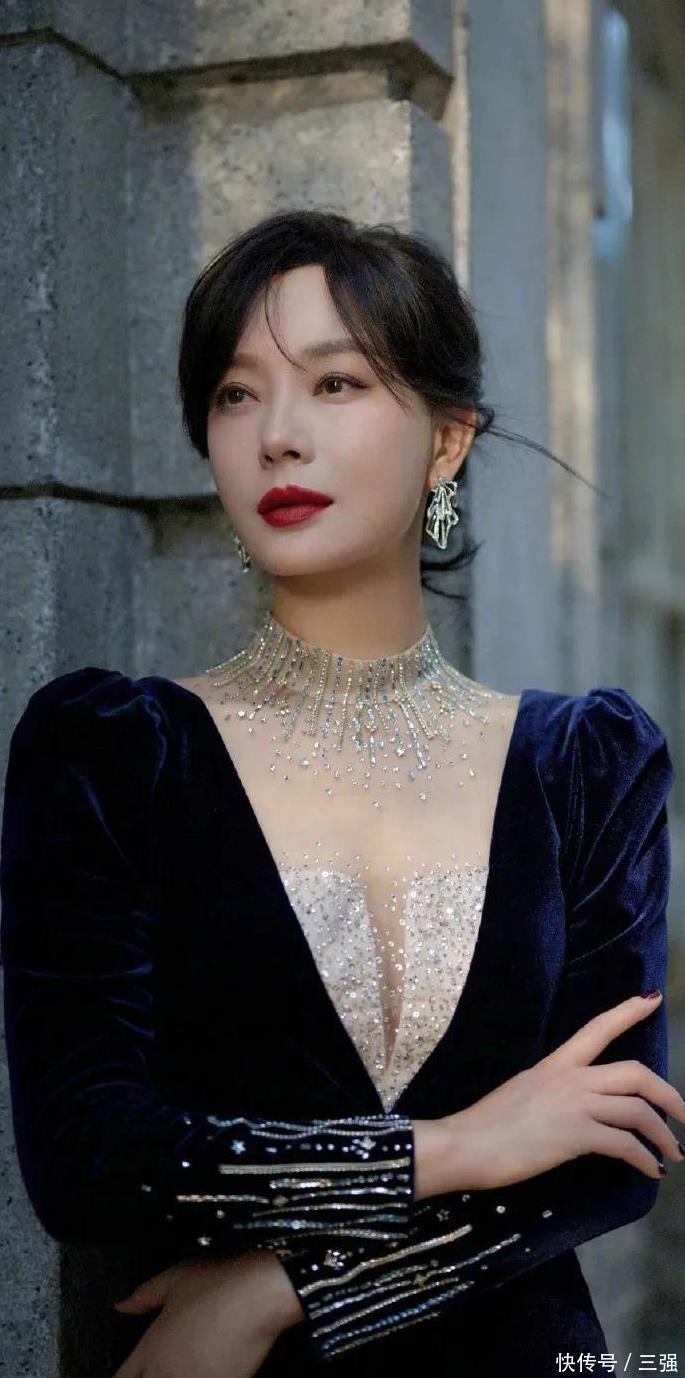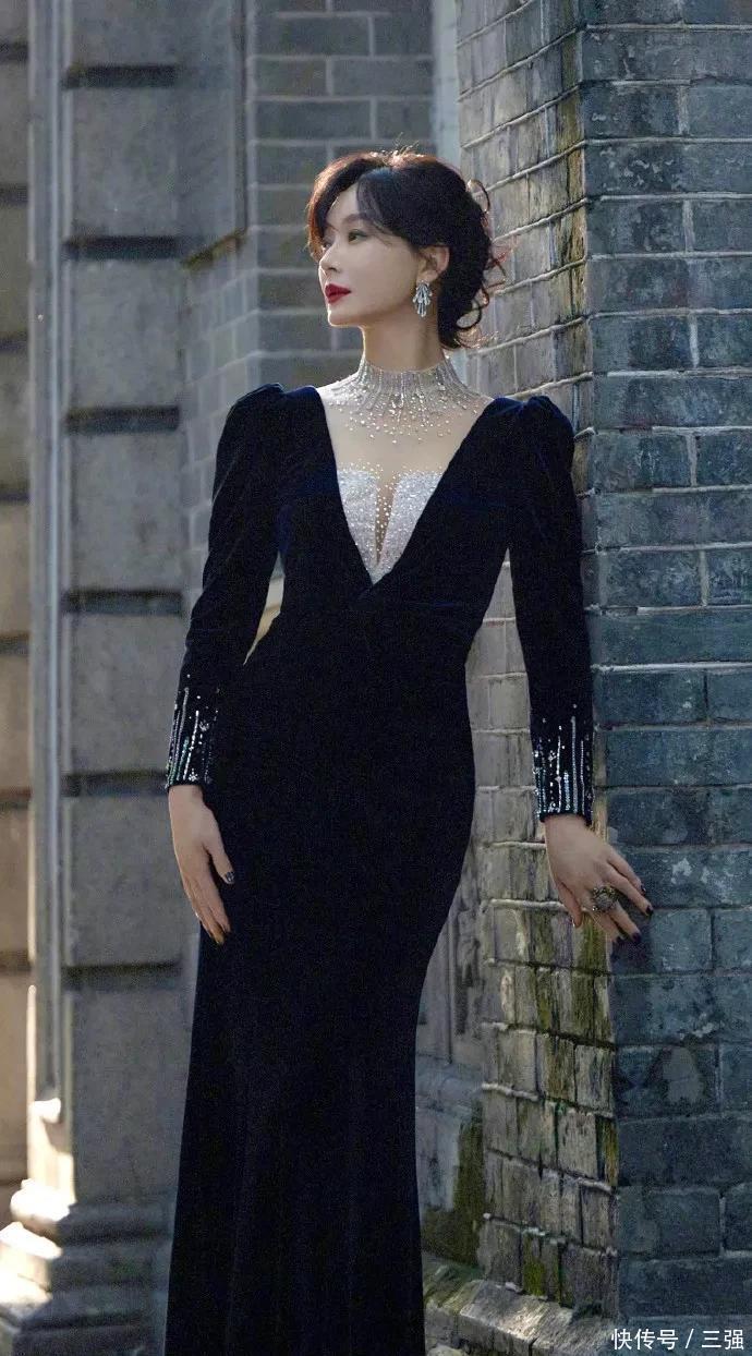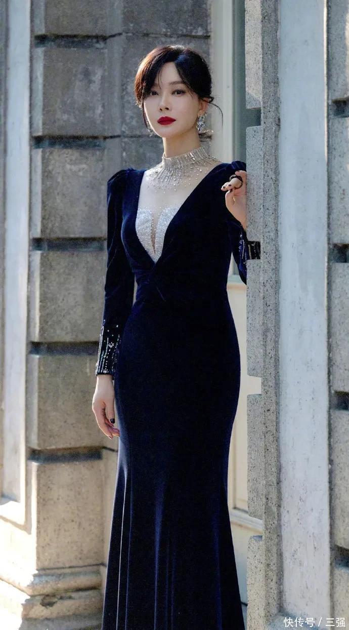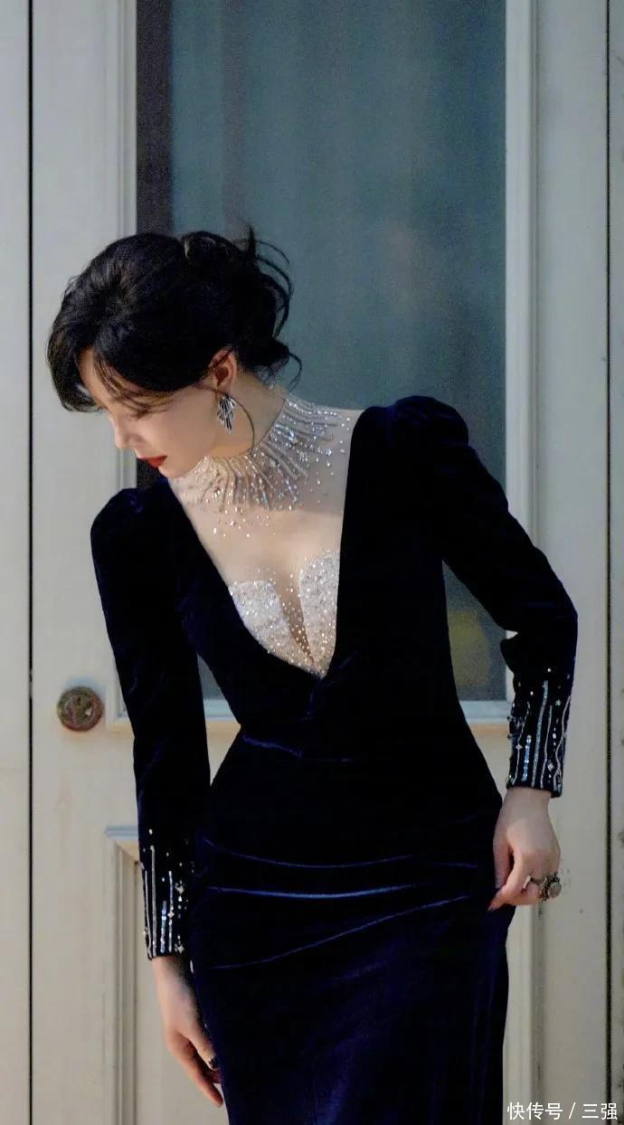 陈数的每一次亮相都堪称穿搭教科书,这次的丝绒钻石礼服造型更是将她的优雅大气展现到了极致。深蓝色的丝绒(Velvet)礼服自带高级滤镜,深 V 领口的设计大胆却不艳俗,中间的钻饰拼接部分如同一汪璀璨的星河,瞬间抓住所有人的目光,将女性的性感与优雅平衡得恰到好处。